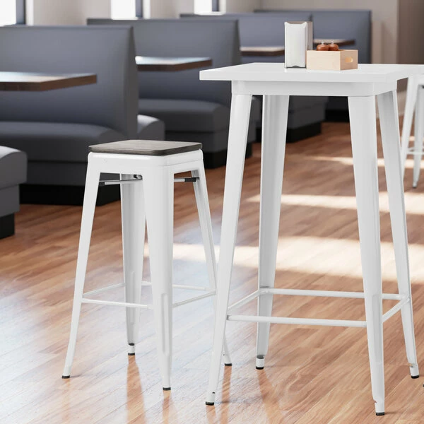 Be the first to review “LT&S Alloy Series Lancaster Table & Seating Alloy Series White Metal Indoor Industrial Cafe Bar Height Stool With Black Wood Seat” Cancel reply