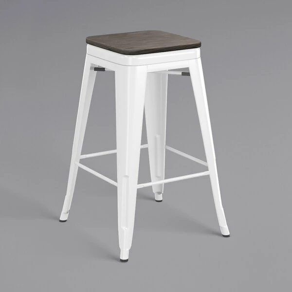 LT&S Alloy Series Lancaster Table & Seating Alloy Series White Metal Indoor Industrial Cafe Counter Height Stool With Black Wood Seat