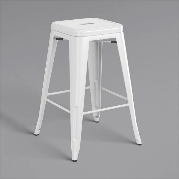 LT&S Alloy Series Lancaster Table & Seating Alloy Series White Stackable Metal Indoor / Outdoor Industrial Cafe Counter Height Stool With Drain Hole Seat