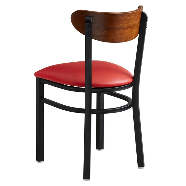 LT&S Boomerang Series Lancaster Table & Seating Boomerang Black Finish Chair With 2 1/2″ Red Vinyl Padded Seat And Antique Walnut Wood Back