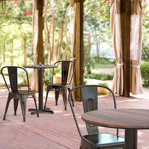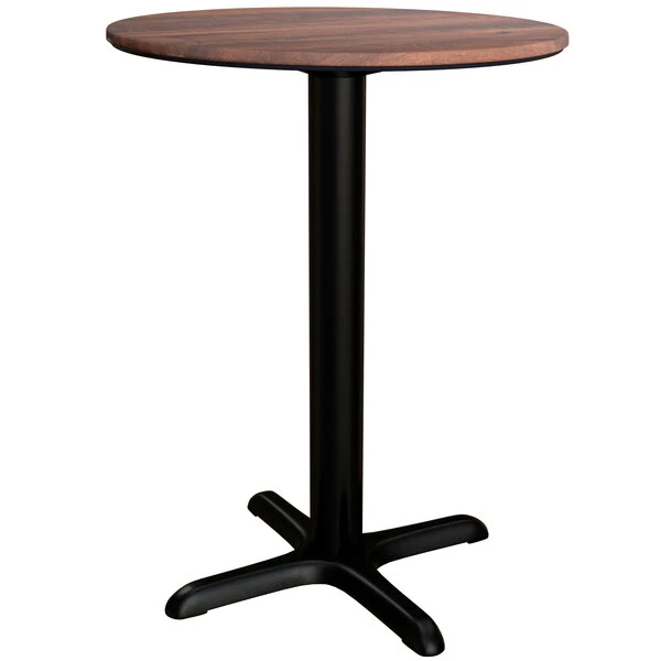 LT&S Excalibur Lancaster Table & Seating Excalibur 24″ Round Dining Height Table With Textured Walnut Finish And Cross Base Plate
