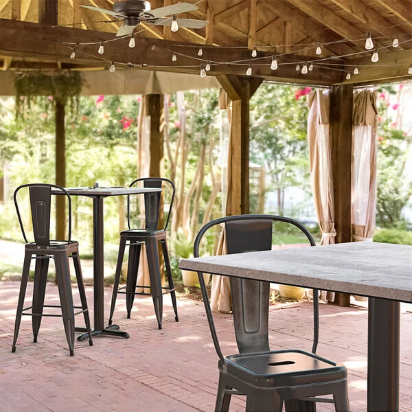 LT&S Excalibur Lancaster Table & Seating Excalibur 27 1/2″ X 27 1/2″ Square Bar Height Table With Textured Toscano Finish And Cross Base Plate