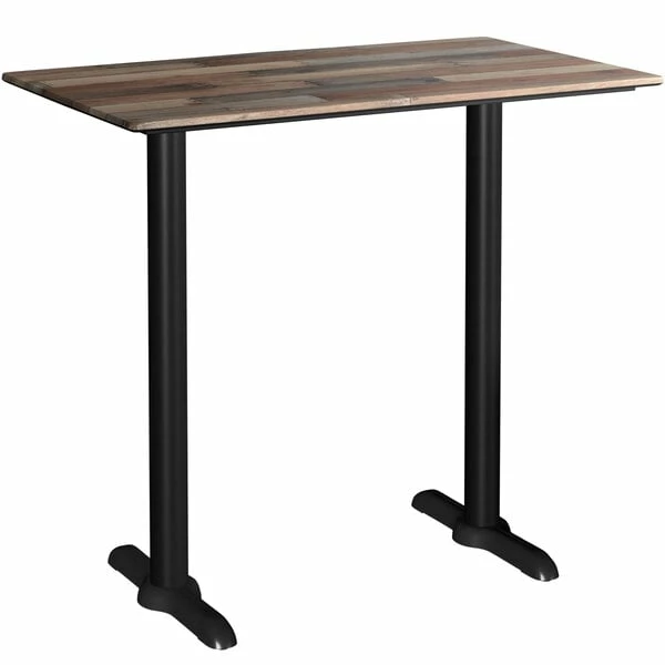 LT&S Excalibur Lancaster Table & Seating Excalibur 27 1/2″ X 47 3/16″ Rectangular Bar Height Table With Textured Mixed Plank Finish And Two End Outdoor Base Plates