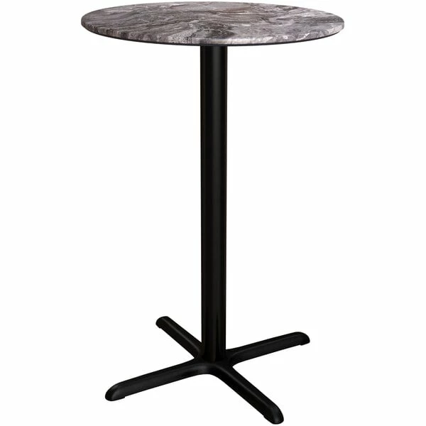 LT&S Excalibur Lancaster Table & Seating Excalibur 36″ Round Bar Height Table With Smooth Paladina Finish And Cross Base Plate
