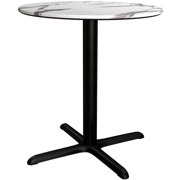 Holland Bar Stool EuroSlim 32″ X 48″ White Marble Indoor / Outdoor Table With Round Base