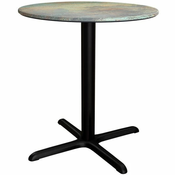 LT&S Excalibur Lancaster Table & Seating Excalibur 36″ Round Dining Height Table With Textured Canyon Painted Metal Finish And Cross Base Plate
