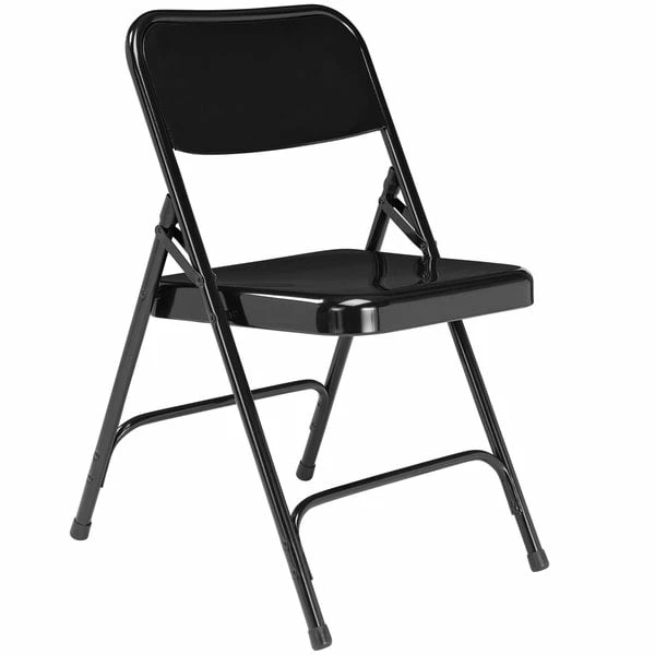 National Public Seating 2210 Black Metal Folding Chair With 1 1/4″ Midnight Black Fabric Padded Seat