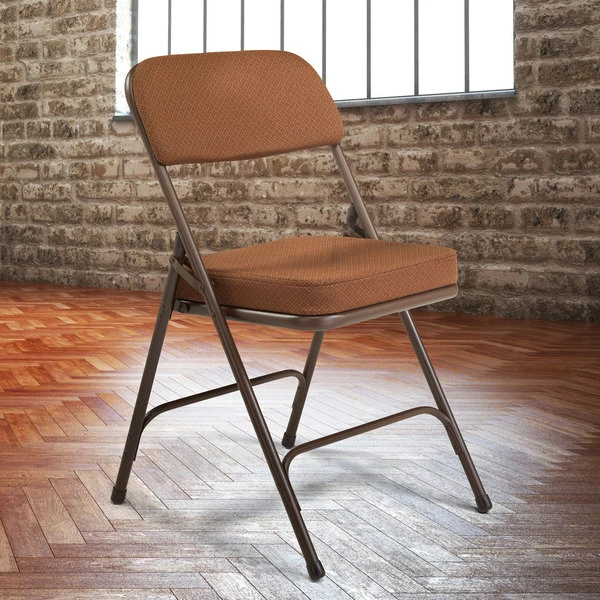 National Public Seating 3219 Brown Metal Folding Chair With 2″ Antique Gold Fabric Padded Seat