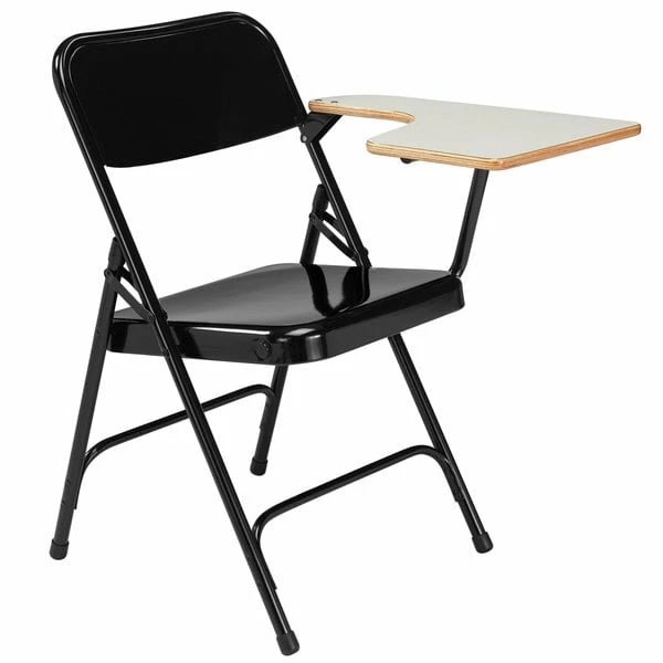 National Public Seating 5210L Black Steel Premium Folding Chair With Left Gray Tablet Arm