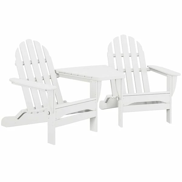 POLYWOOD Classic Series White Folding Adirondack Chairs With Connecting Table