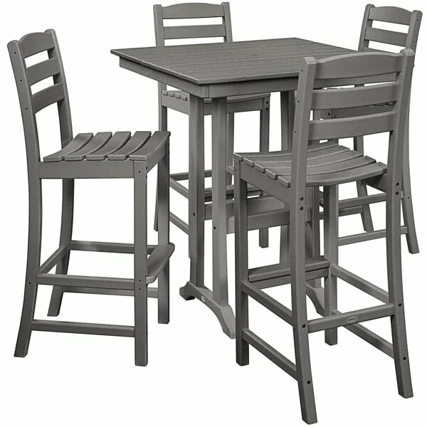 POLYWOOD La Casa Cafe 37″ X 37″ Slate Grey Farmhouse Trestle 5-Piece Bar Set