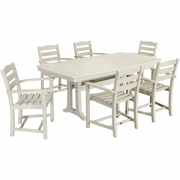 POLYWOOD La Casa Cafe 7-Piece Sand Dining Set With 6 Arm Chairs And Nautical Trestle Table