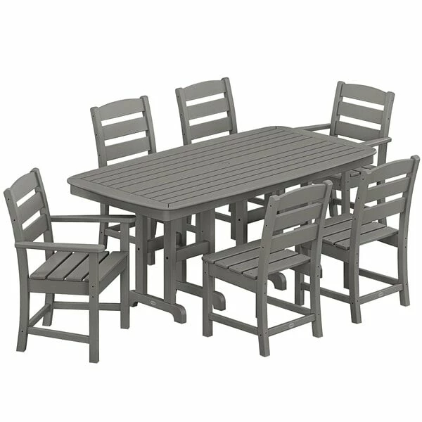 POLYWOOD Lakeside 7-Piece Slate Grey Dining Set With Nautical Table