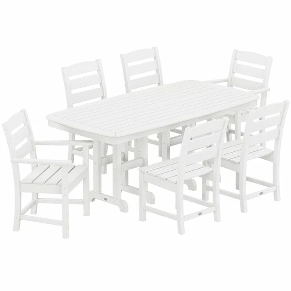 POLYWOOD Lakeside 7-Piece White Dining Set With Nautical Table