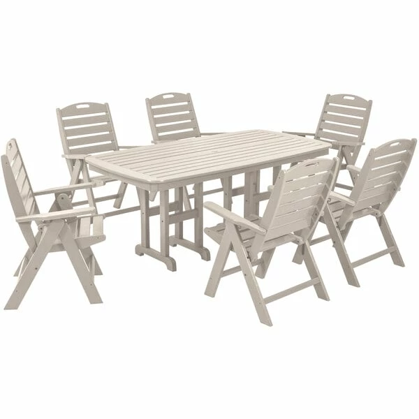 POLYWOOD Nautical 7-Piece Sand Dining Set With 6 Folding Chairs