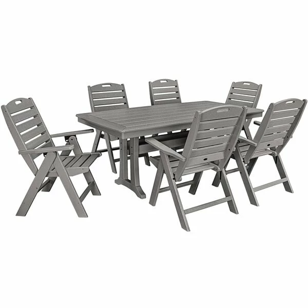 POLYWOOD Nautical 7-Piece Slate Grey Dining Set With 6 Folding Chairs And Nautical Trestle Table