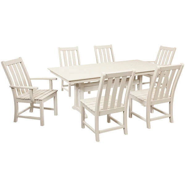 POLYWOOD Vineyard 7-Piece Sand Dining Set With Farmhouse Trestle Table