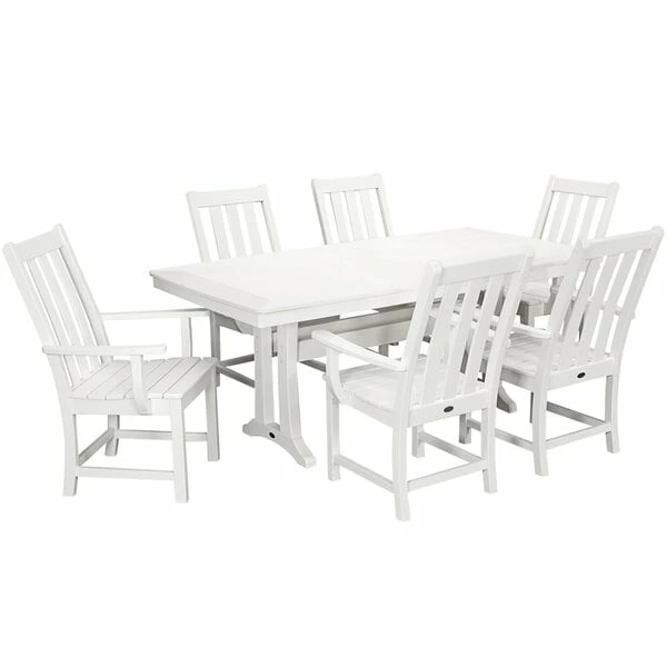 POLYWOOD Vineyard 7-Piece White Dining Set With Nautical Trestle Table And 6 Arm Chairs