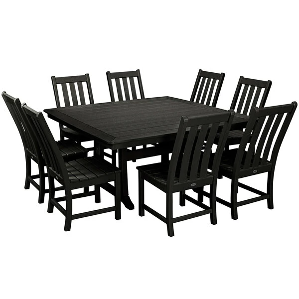 POLYWOOD Vineyard 9-Piece Black Dining Set With Nautical Trestle Table