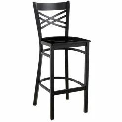 Lancaster Table & Seating Black Finish Cross Back Bar Stool With Black Wood Seat