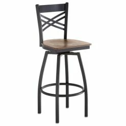 Lancaster Table & Seating Black Finish Cross Back Swivel Bar Stool With Mahogany Wood Seat