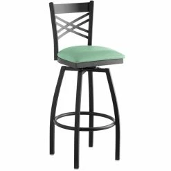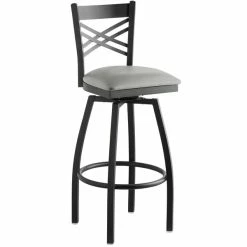 Lancaster Table & Seating Black Finish Cross Back Swivel Bar Stool With Black Wood Seat