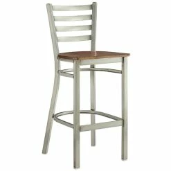 Lancaster Table & Seating Clear Coat Finish Ladder Back Chair With 2 1/2″ Seafoam Vinyl Padded Seat