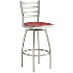 Lancaster Table & Seating Clear Coat Finish Ladder Back Swivel Bar Stool With Mahogany Wood Seat
