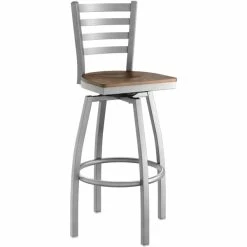 Lancaster Table & Seating Clear Coat Finish Ladder Back Swivel Bar Stool With Vintage Wood Seat