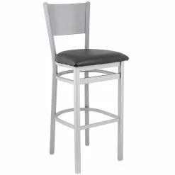 BFM Seating Axel Silver Mist Steel Bar Height Chair With Black Padded Vinyl Seat