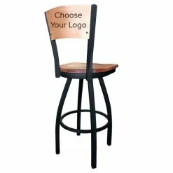 Holland Bar Stool Black Steel Logo Laser Engraved Bar Height Swivel Chair With Maple Back And Seat