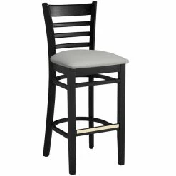 Lancaster Table & Seating Black Finish Ladder Back Swivel Bar Stool With Black Wood Seat