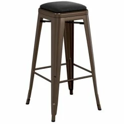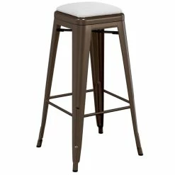 Lancaster Table & Seating Vintage Ladder Back Bar Height Chair With Light Brown Padded Seat