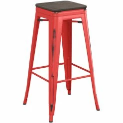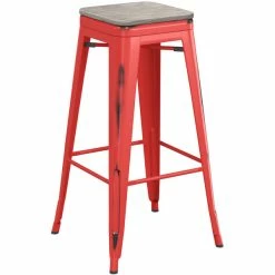 Lancaster Table & Seating Red Double Ring Barstool With 3 1/2″ Thick Seat
