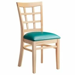 Lancaster Table & Seating Natural Wooden Window Back Chair With 2 1/2″ Green Padded Seat